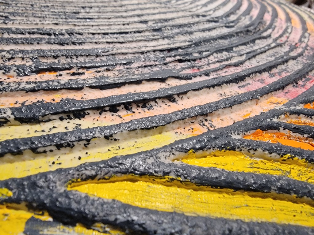 Started with a colorful base layer of acrylic, then layers of stucco, and finally more acrylic.